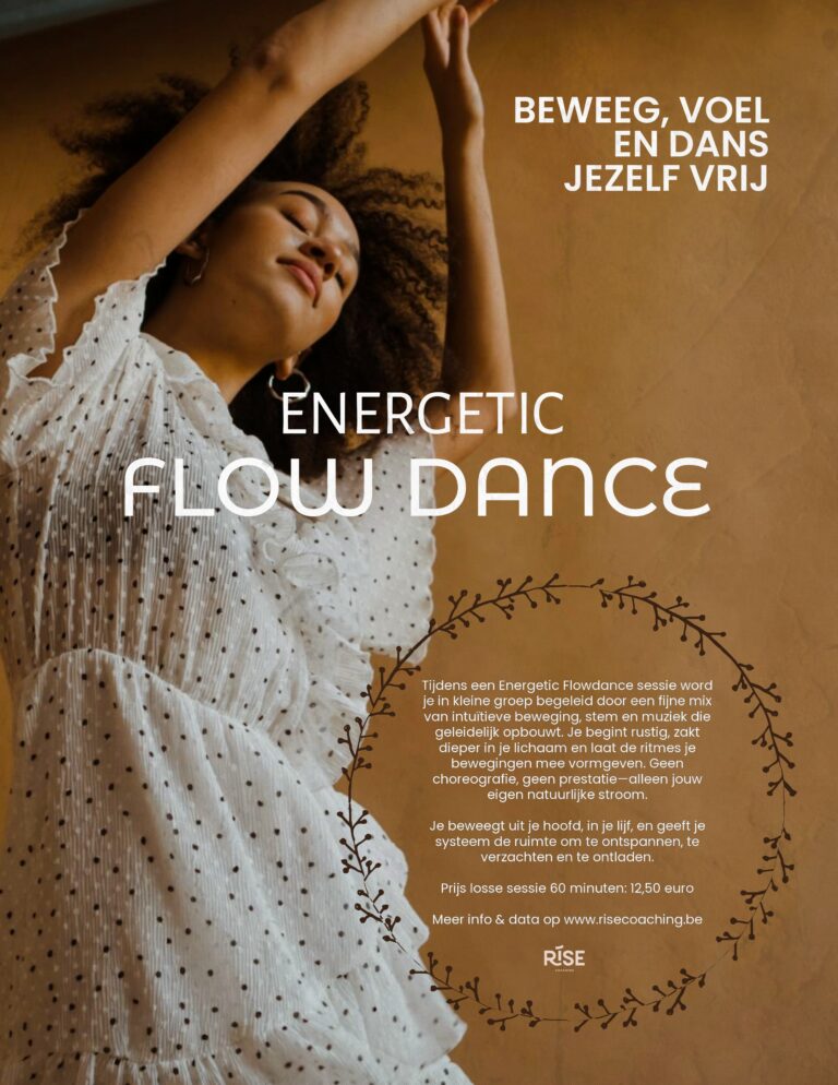 Tijdens een Energetic Flowdance sessie word je in kleine groep begeleid door een fijne mix van intuïtieve beweging, stem en muziek die geleidelijk opbouwt. Je begint rustig, zakt dieper in je lichaam en laat de ritmes je bewegingen mee vormgeven. Geen choreografie, geen prestatie—alleen jouw eigen natuurlijke stroom. Je beweegt uit je hoofd, in je lijf, en geeft je systeem de ruimte om te ontspannen, te verzachten en te ontladen.
