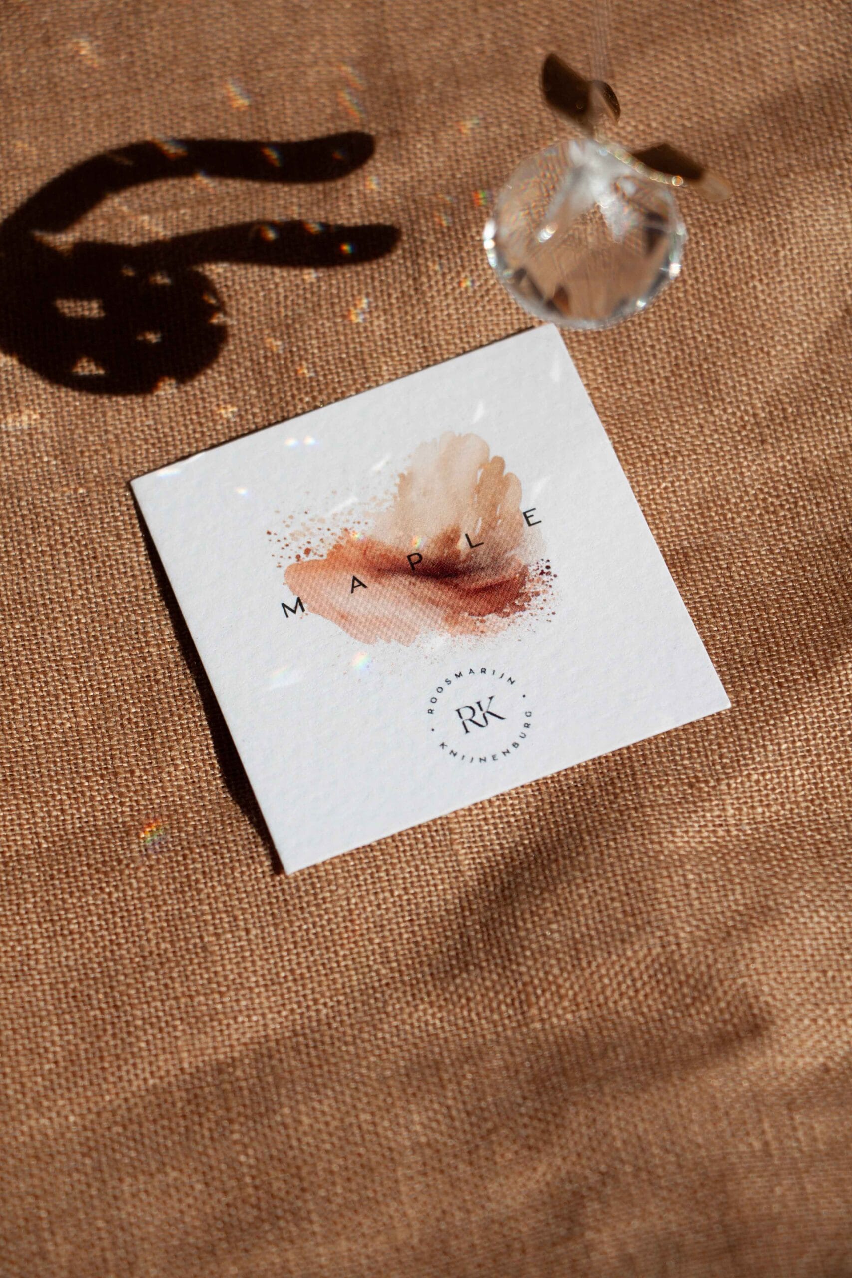 kristal zonnevanger 2 cm in een mooi doosje beige bruin / messing esdoornzaadje / gedichtje